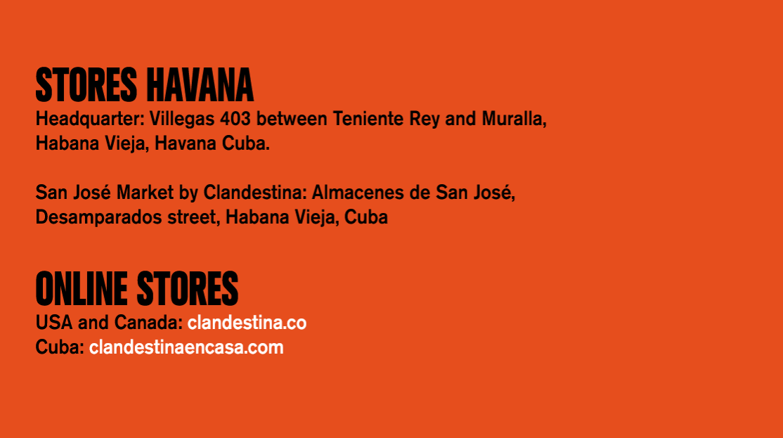 If you have any questions, don't hesitate in contacting us at info@clandestina.co